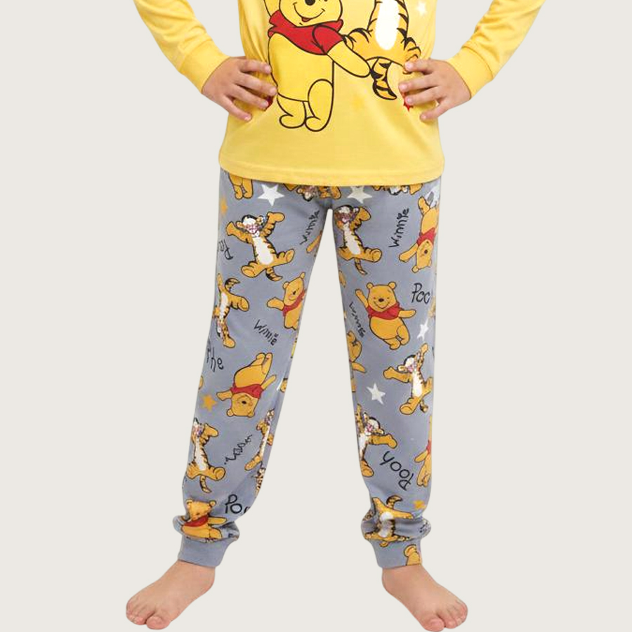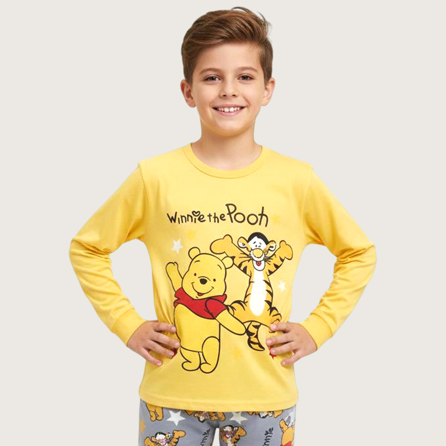 Winnie the Pooh Boys Cotton Pajama Set – Yellow Grey