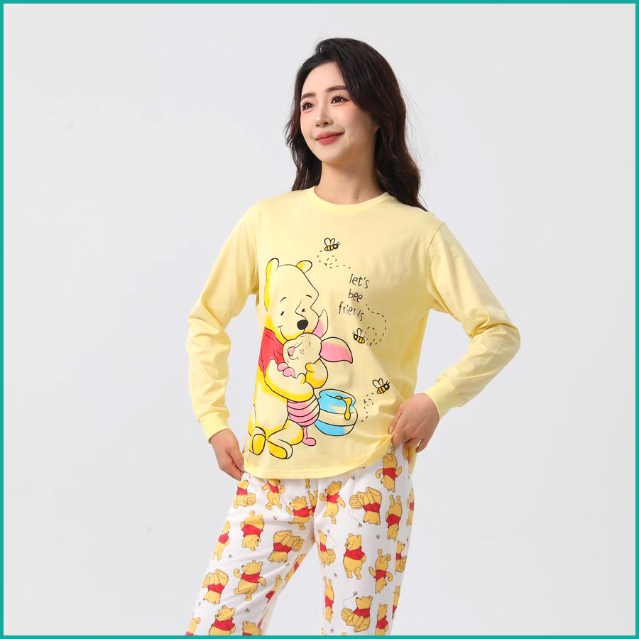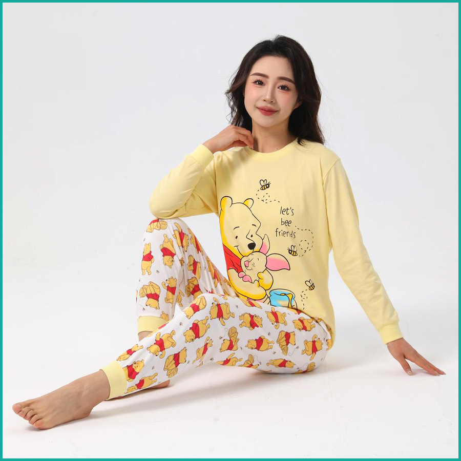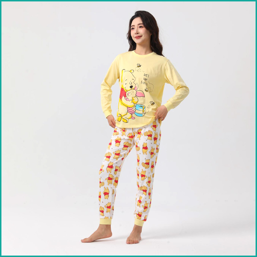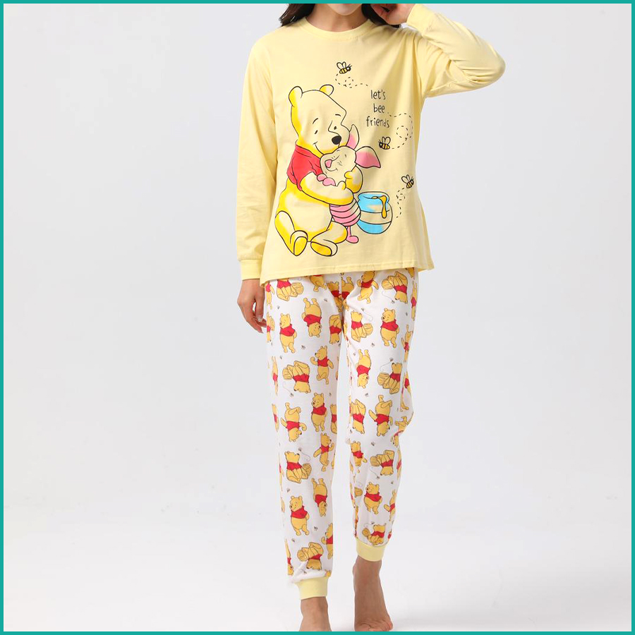 Winnie the Pooh Ladies Full Sleeves Cotton Pajama Set – Yellow